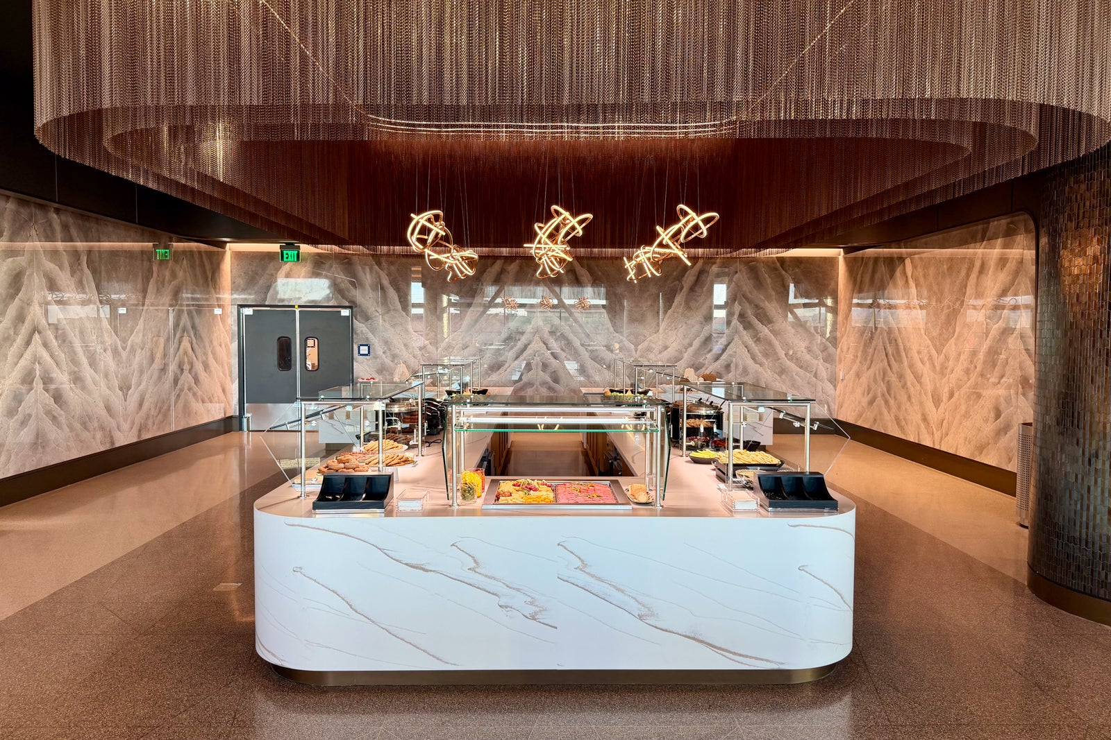 Another striking design element that really helps elevate the space is the lighting — from the sconces to the chandeliers to the lamps, this feels more like a Four Seasons lobby than an airport.