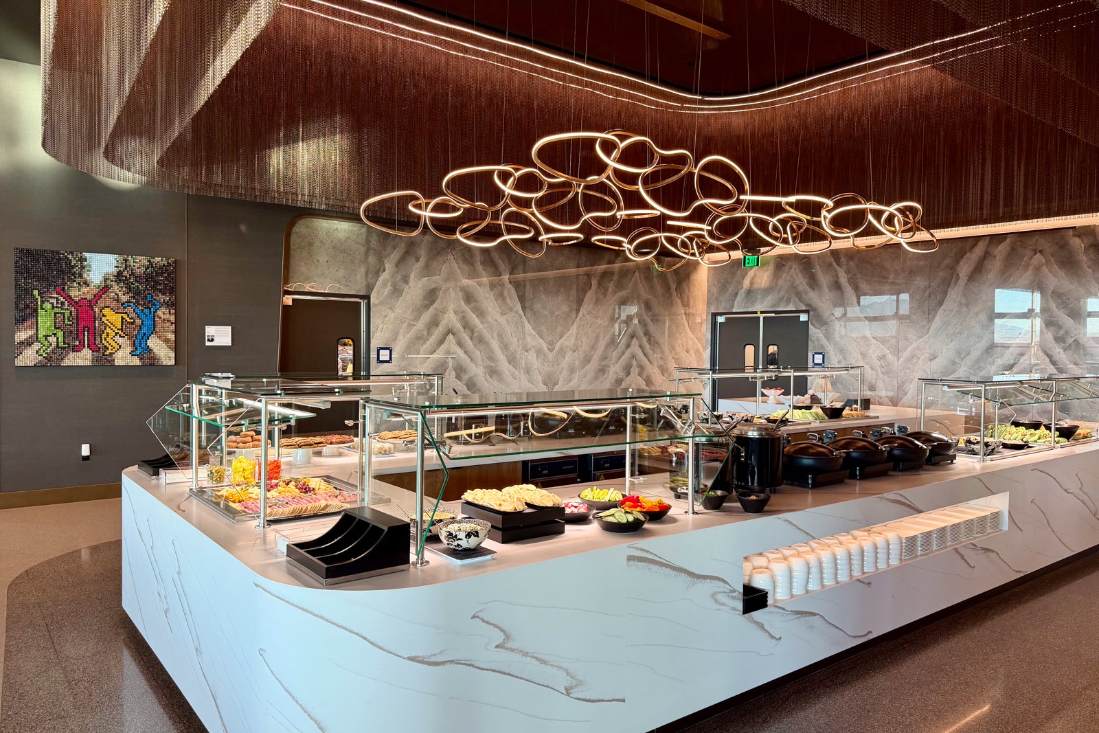 As always, Delta's art curation program was on full display in this space. I loved the piece near the buffet that shows four figures made from colorful computer keyboard keys.