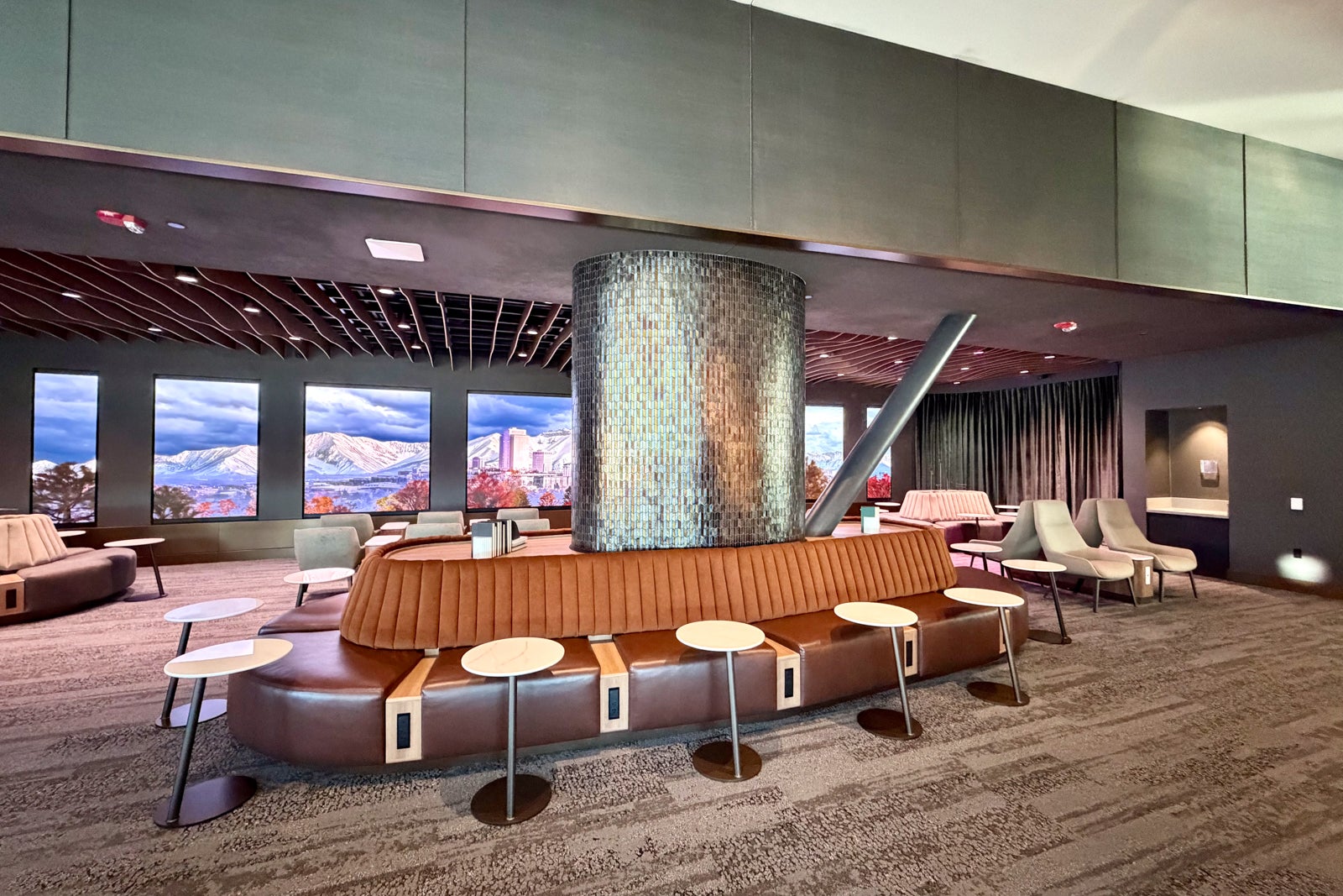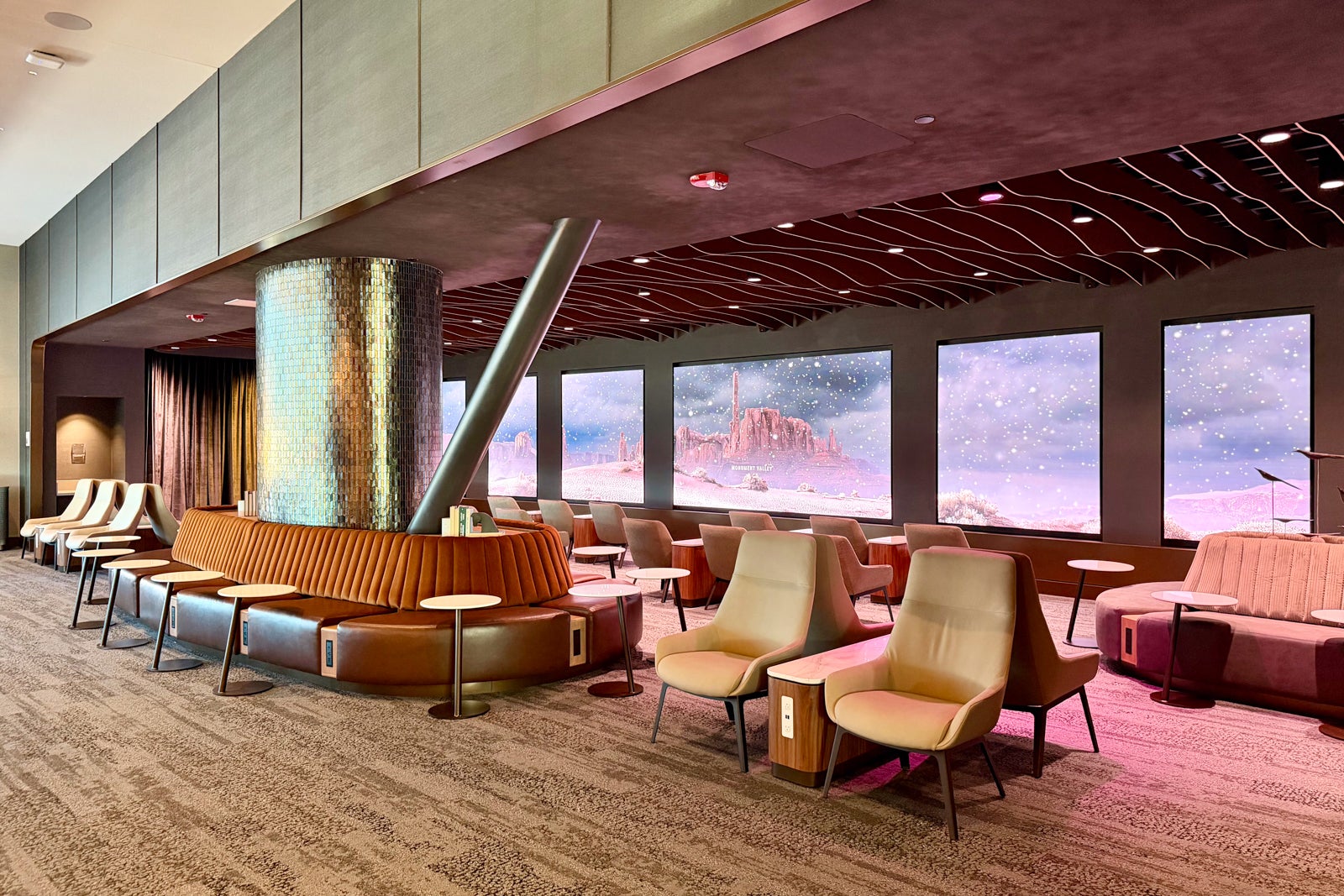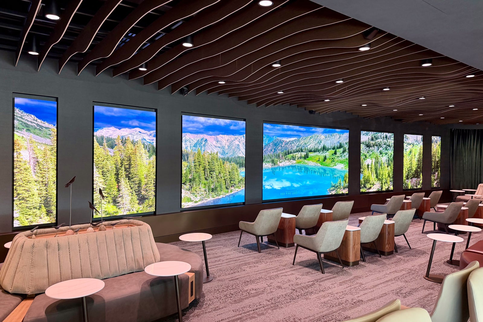 Instead of simply installing a TV wall blasting the news or sports, the airline went with seven screens that display rotating digital vistas of Utah's most famous sights, like Monument Valley and Red Pine Lake. I love this emphasis on relaxation areas, and hope to see more Immersion Rooms at other new Sky Clubs.