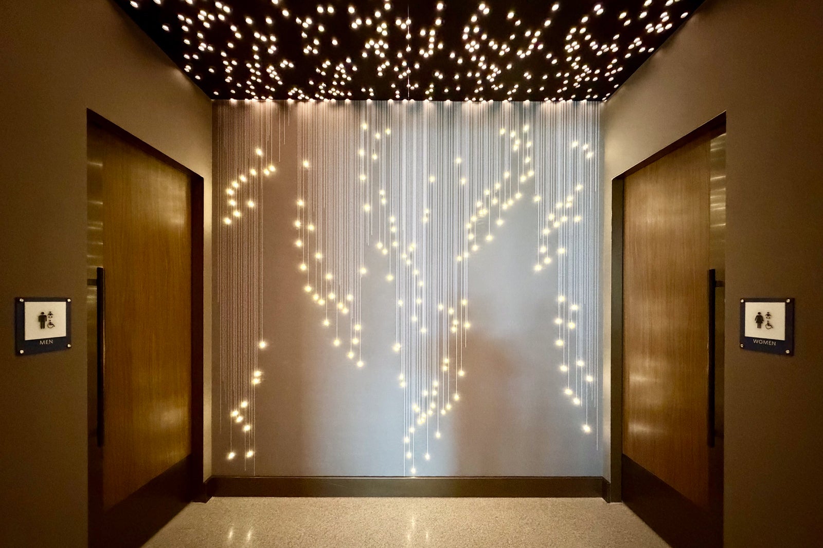 The wood-lined entrance is designed to resemble the Wasatch mountain range surrounding Salt Lake City, and it's just the first of many beautiful design motifs you'll find inside the space.